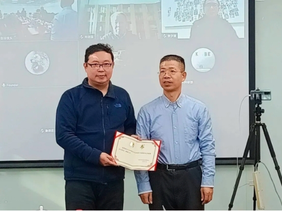 中心主任郭宗明(右)為汪文(左)頒發(fā)聘書